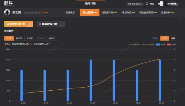 网友的关注和讨论也为于文亮的抖音账号带来了直观的粉丝增长。新抖数据显示,近7天于文亮抖音涨粉166万,截至发稿前粉丝量达到250万。