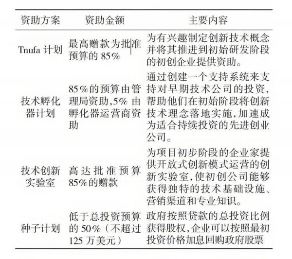 部分以色列政府资助计划,资料来自《以色列半导体产业发展战略及对中国的启示》