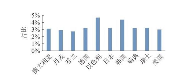 2022年半导体研发支出GDP占比领先的国家,资料来自《以色列半导体产业发展战略及对中国的启示》