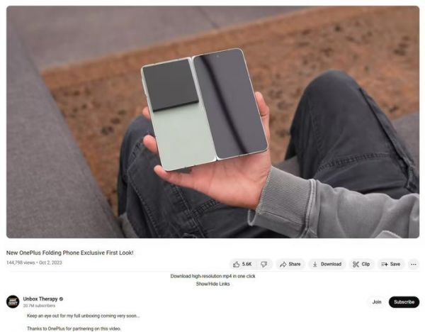 从前几天流出的渲染图来看,这款折叠屏手机与一加 Open 折叠屏手机外观完全相同。