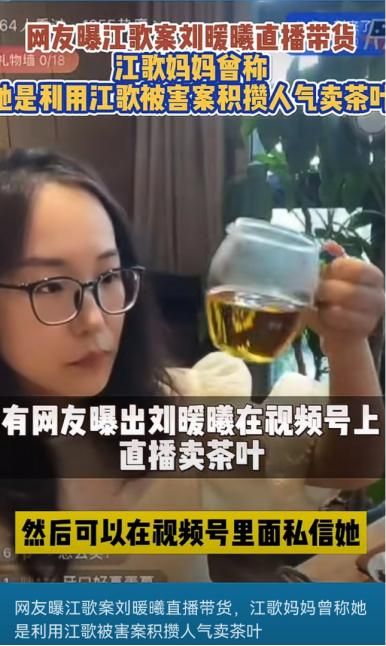 与此同时,有网友吃惊地发现,刘暖曦竟然也紧跟江歌妈妈的脚步,在视频号上直播带货,主要售卖茶叶、书籍等。