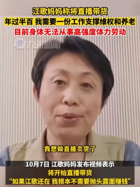 2023年10月9日晚,江歌妈妈略显局促地开启了首场直播带货,短短1小时,10万网友涌入直播间,3小时销售额破百万。