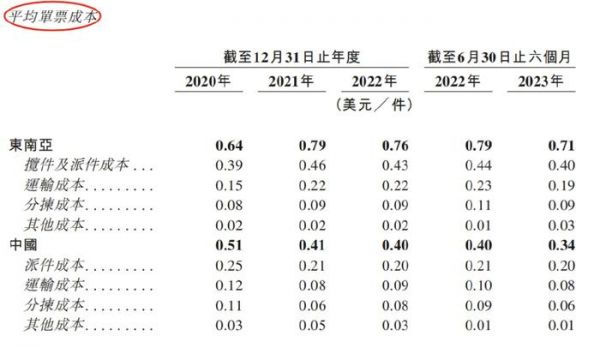 低价方面,极兔一直采取烧钱补贴的方式来吸引用户,即便此前其在国内市场打出“8毛发去全国”的惊人低价备受诟病,但它却屡试不爽,坚持在自己身上留下“低价”标签。从单票上看,极兔的收入偏低,成本却偏高。数据显示,2020年-2022年,极兔在国内市场的平均单票收入分别为0.23美元、0.26美元、0.34美元,平均单票成本分别为0.51美元、0.41美元、0.40美元,折合人民币平均每单亏损0.43元。