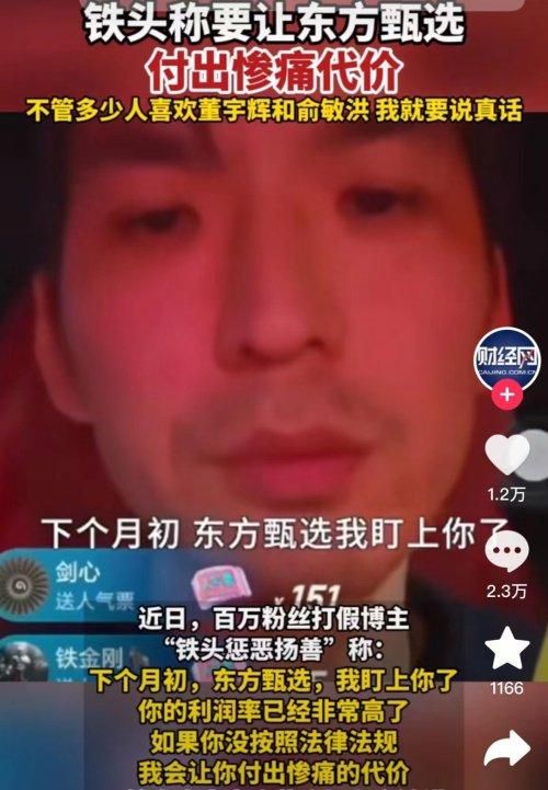就在10月9日晚,铁头在直播间里预告,他要让东方甄选付出惨痛代价。