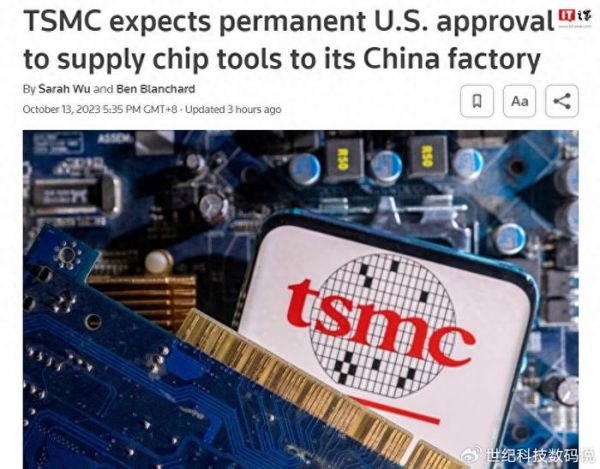 10 月 13 日消息,据路透社报道,台积电将获得美国的许可,无限期向其中国工厂供应美国芯片制造工具,以放松华盛顿对在华运营的外国芯片制造商的限制。