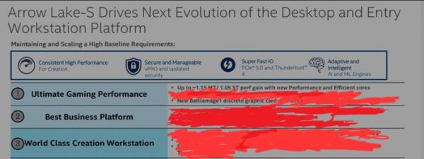 英特尔 Arrow Lake-S CPU幻灯片曝光:单核提升 5%,多核提升 15%