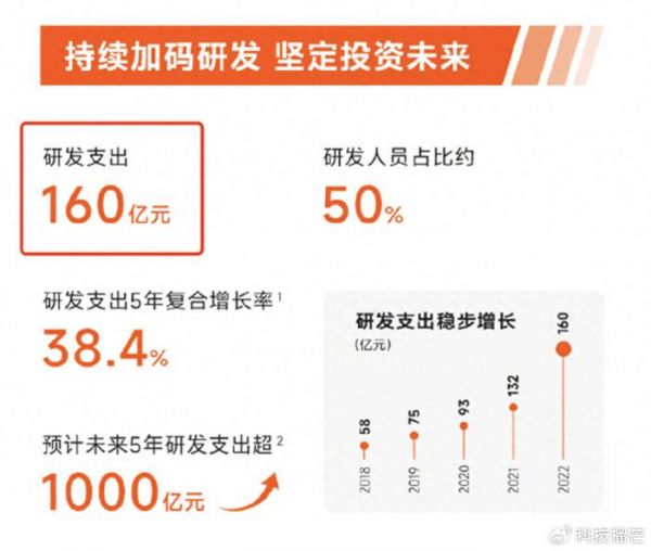 而2023年上半年,华为研发费用为826.04亿元,如果下半年也是差不多的数据,华为在2023年的研发投入还是1600亿元左右。不过华为的研发投入虽然不如苹果,但和其他国产厂商相比还是有很大优势的。比如小米,2022年的研发投入只有160亿元,和华为差了十倍。