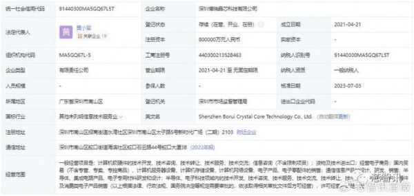 根据工商资料显示,博瑞晶芯成立于2021年4月21日,注册资金高达80亿人民币,公司法人代表兼董事长为黄小军,总经理兼董事为刘强。