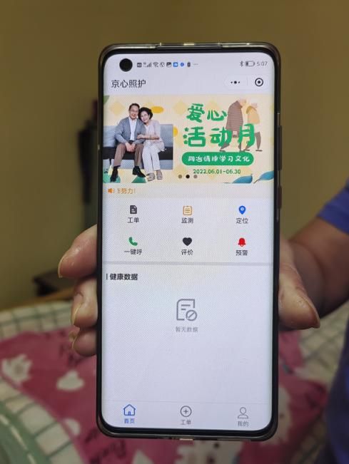 傍晚时分,通州中仓小区28号楼的陈女士,开始给婆婆王淑文准备晚饭。三年前,97岁的王奶奶外出不慎摔跤,一直卧床至今。长年累月的时刻照护,透支了陈女士的体力和心力。如今,有了智慧科技系统的助力,陈女士不但有了喘息时间,还可随时在手机上查看老人的身体健康状况,从容地做饭和安排其他事情。