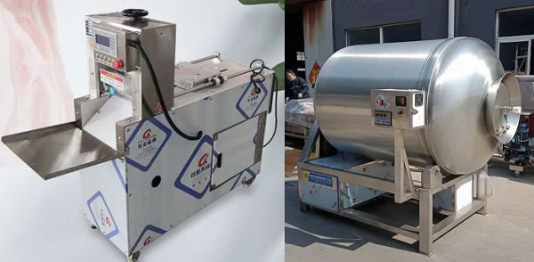 左:冻肉切片机;右:肉类真空滚揉腌制机