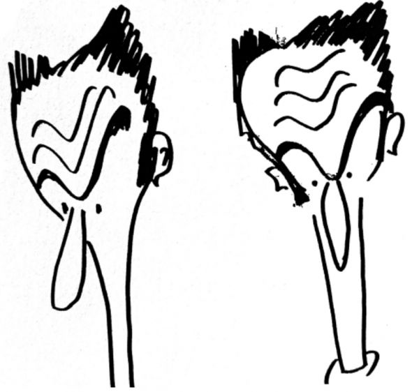 1975 年,卡尔维诺绘制的两幅滑稽自画像。