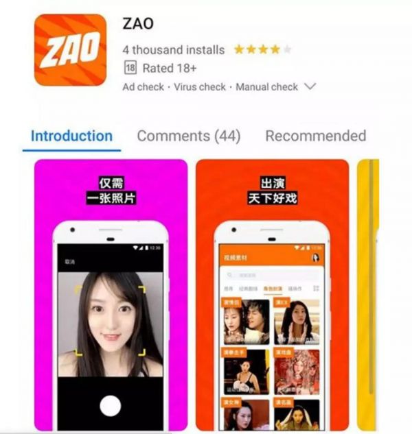 通过该App,用户仅需上传一张照片,就能用自己的脸替换视频中别人的脸,从而“穿越”到视频中和偶像明星同屏“出演”电影。上线第二天,“ZAO”在苹果应用商店App Store的免费下载排名中已跃居第二,其火爆可见一斑。