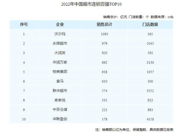 2022年中国超市连锁百强TOP10 图源:零售圈