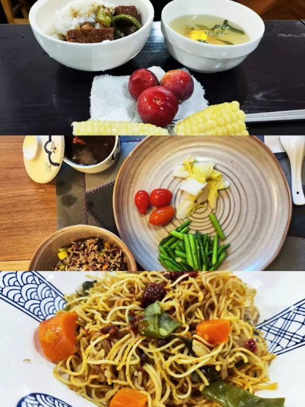 从上到下依次为寺院午斋、养生餐、素面