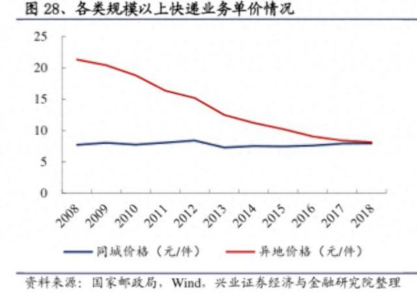 图源:兴业证券兴业证券披露的数据显示,2008年-2017年,规模以上异地件快递量复合增速39.5%。2011年,国家邮政局披露的快递服务满意度调查结果显示,快递服务总体满意度仅为68.9分,“公众对快件不能在承诺时间内送达、不能主动反馈投递结果、快递寄递速度较慢不满意”。