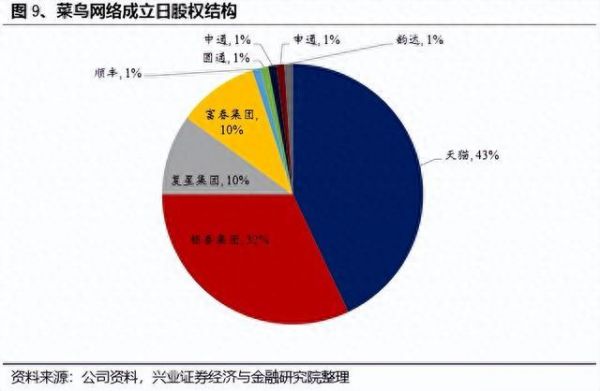 图源:兴业证券与京东物流全链条自营的“重”模式不同,阿里最初并不希望深度介入物流的方方面面,仅仅希望“轻资产”运营菜鸟。这也是为什么阿里选择让零售、地产、物流等企业持股菜鸟的首要原因。