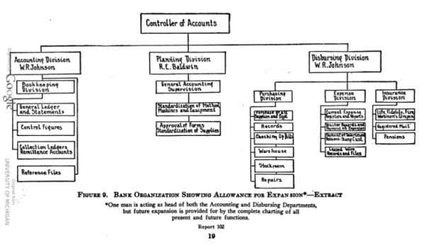 严格来说,要到20世纪20年代更进一步的关于组织结构的观点传播之后才得以获得更多关注。韦伯、法约尔等人关于工作专业化、组织层级以及管理跨度等理论得到传播之后,更多的企业才开始拥有了组织图。