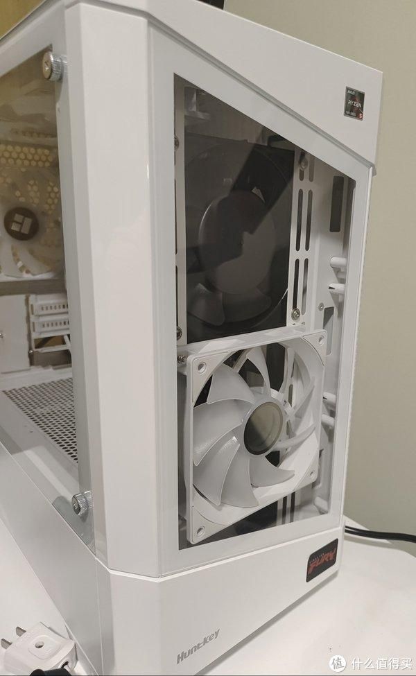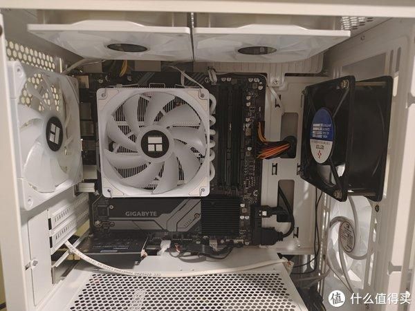 白色的线连接220v风扇,从机箱后面挡板引出。这样如果觉得cpu温度高就可以单独开启220v风扇了。其它硬件就比较常规了,显卡还没装想入手a卡,后期再补充。