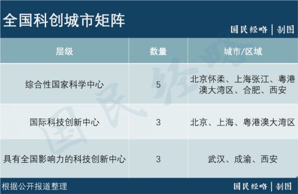 如果说国家中心城市作为国家城镇体系的金字塔尖城市,那么国家科学中心和科技创新中心,就是全国科创体系的中心城市,代表国家参与全球科技竞争。