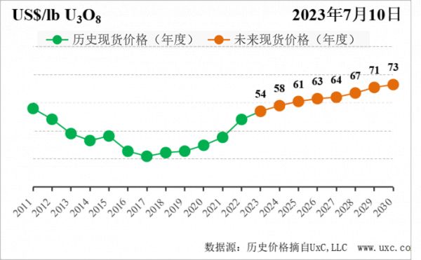 中国核能协会国际天然铀中长期-年度现货价格预测指数(季度更新) 图片来源:中国核能协会