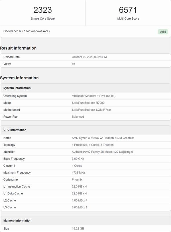 仅从参数而言,锐龙3 7440U的性能就不会差,甚至可以说是目前入门级移动端处理器中排名前列的存在。在GeekBench 6的测试中,锐龙3 7440U的单核性能得分为2323,多核性能得分为6571。