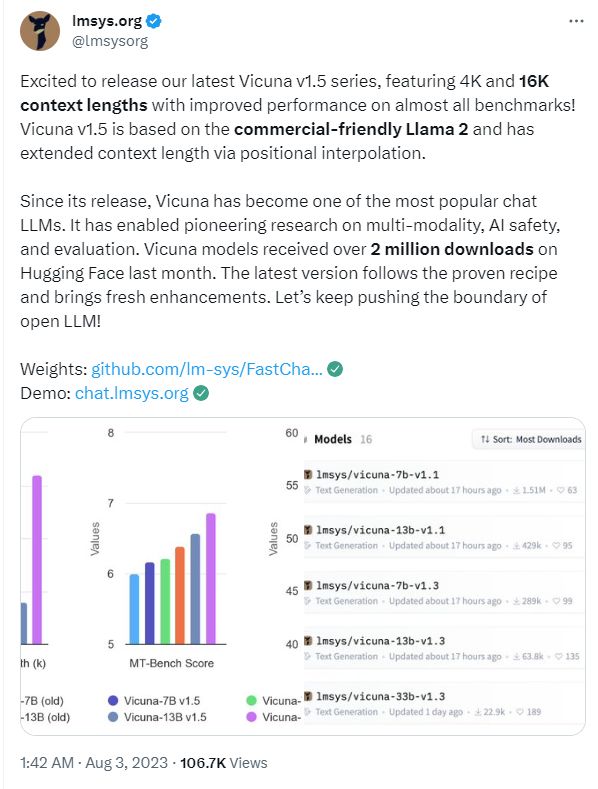Meta发布开源大模型Llama后,斯坦福、卡内基梅隆等多所高校的研究人员就曾联合起来,以此为基础打造了开源大模型Vicuna,很快便突破了200万次下载。