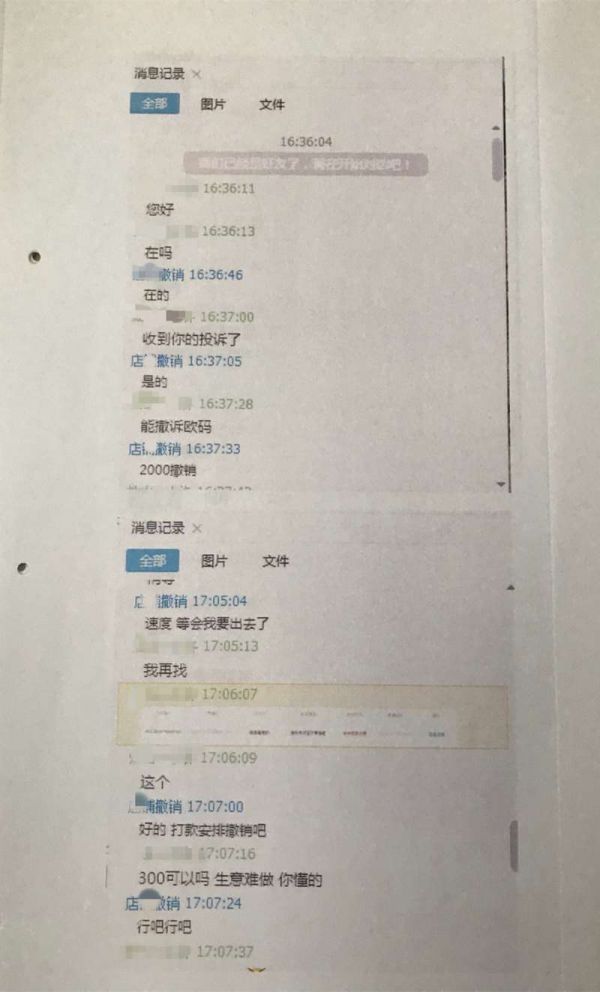 在投诉的同时,三人还会上传在市场监管部门投诉的“截图”,并引导商家转移到电商平台外的聊天工具上“谈判”,进一步威胁商家进行敲诈。而事实上,那些向市场监管部门投诉的“截图”,全是通过PS方式伪造的。
