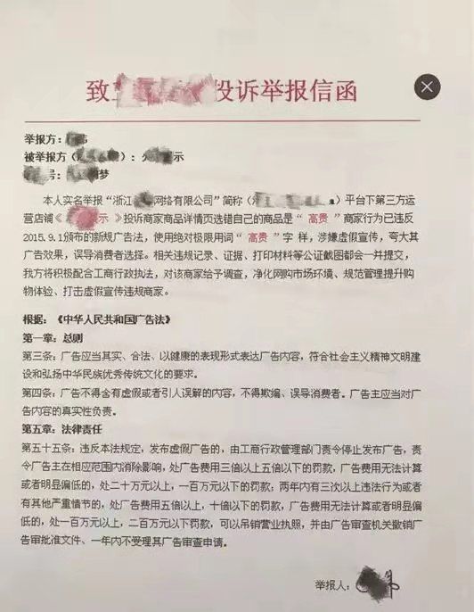 2018年上半年,淘宝店主李先生在一次宣传活动中,使用了“精选”这个宣传语。当时,有买家在李先生的网店下了订单,但没等发货就申请了退款。对方投诉产品使用“精”字打头的“极限词”夸大宣传,并称已向网购平台及市场监管部门举报,但对方在投诉详情里悄悄留下了QQ号。