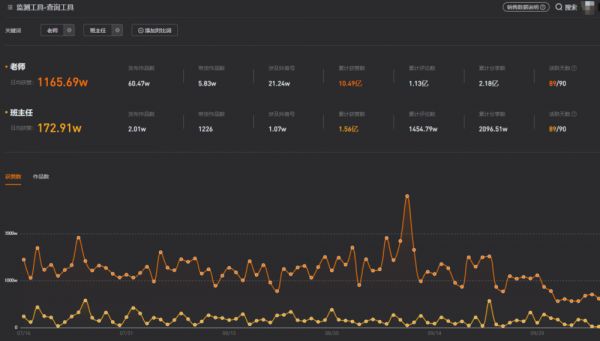 新抖数据显示,带有“老师”关键词的相关视频近三个月日均获赞超千万,一批在学校里用同款机位记录教师日常的账号迅速蹿红。