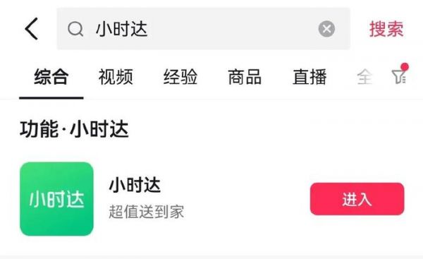 就在不久前,抖音电商旗下的小时达服务获得独立的入口,用户打开抖音,搜索“小时达”即可一键直达。