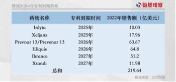 即便不看现有产品的销售情况,仅从专利悬崖角度,辉瑞的无奈同样暴露无遗。如下图所示,在未来4年,辉瑞有6款药物专利到期,均为支柱管线。其中,就包括上述5款畅销药。