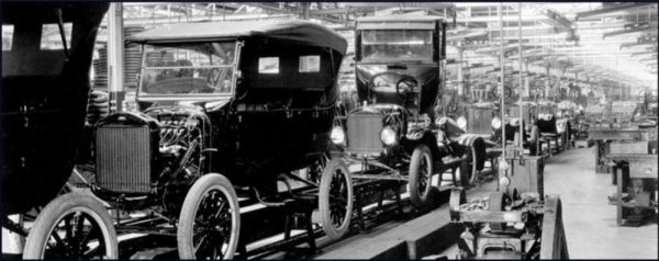 (图:1913年,福特汽车首创了流水线模式,但也带来了“劳动异化”)