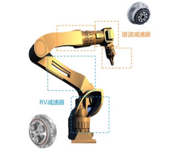 (图:谐波减速器主要用在机器人手臂关节,RV减速器用于基座)