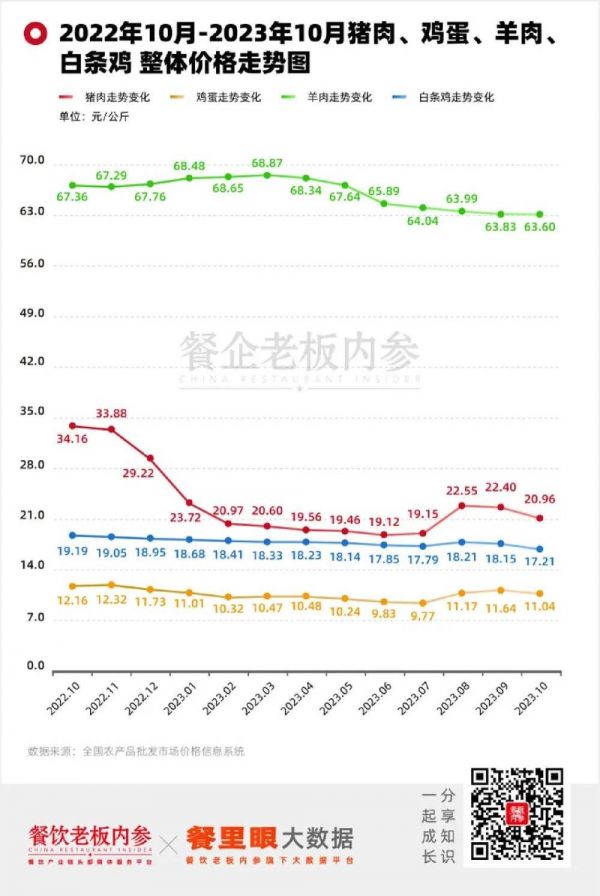其他平缓走跌的,还有鸡蛋、羊肉和白条鸡。