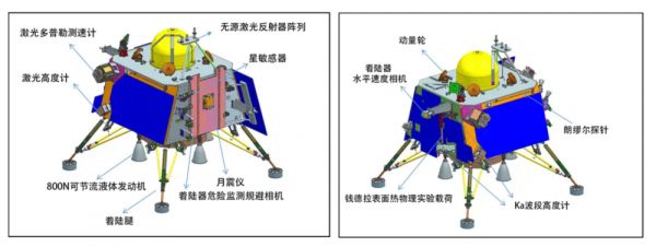 “月船”3的总质量为3.9t,为了保证任务成功,“月船”3在“月船”2的基础上,削减了科学载荷数量,用于装载更多燃料。同时,加大了着陆腿强度,并增加了激光测速计,提升了着陆能力。
