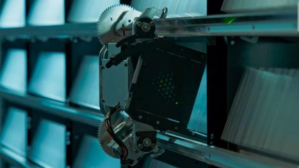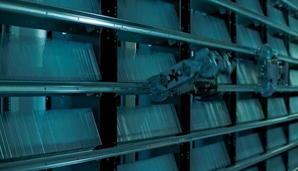 库实验室:当请求调用数据时,库中的机器人会自行获取对应的存储片段,并将其插入到读取器中。