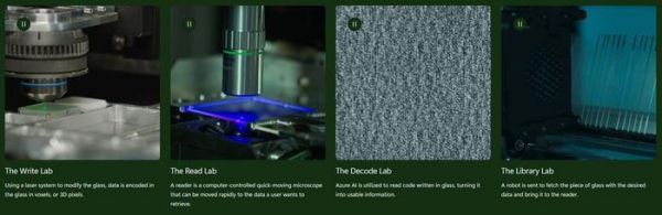 IT之家注意到,微软还展示了通往 Project Silica 数据存储和检索的四个步骤,主要涉及四个“实验室”: