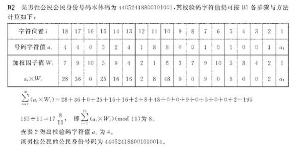 校验码计算范例丨国家标准《公民身份号码》GB11643—1999因为模数是11,所以最后的结果有0~10共10种可能性,为了保证校验码只占1个字符位置,当算出来的 a1 等于10时,在身份证上用罗马数字符X表示。