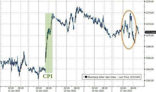 衡量兑六种主要货币的一篮子美元指数DXY一度在美股午盘后转涨,尾盘再度转跌交投106.20,抹去上周四来近半涨幅,并脱离一周高位,两周前创11个月最高至107.34。有分析称,货币市场推动力量仍为中东紧张局势和全球债券收益率上升,“关键问题是冲突进一步升级的程度”。