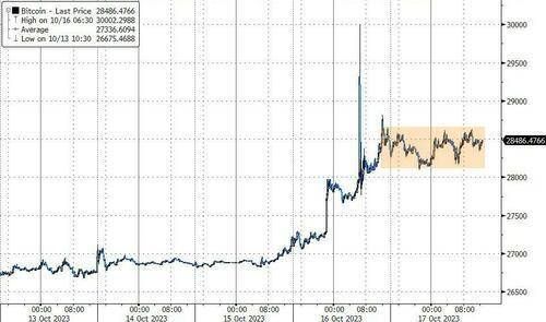 比特币交投2.84万美元,仍离近两个月最高不远