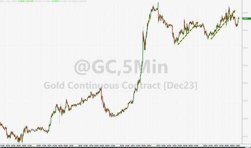 现货黄金一度转跌并失守1920美元,暂离三周高位,需求担忧压低伦敦金属