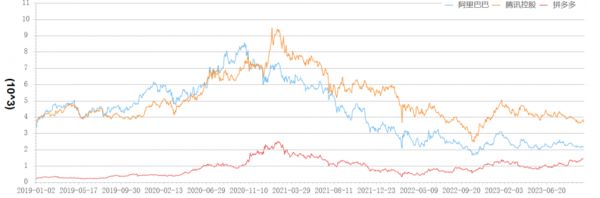 阿里、腾讯、拼多多市值对比 数据来源 / Choice数据