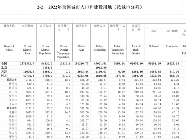 另一个是住建部统计年鉴,最新数据是2022年,只公布了城区人口数据,并未明确哪些城市属于超大特大城市。