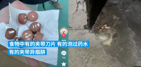 去年澎湃新闻有一个报道,有多位成都网友反映:自家宠物犬遭陌生人投喂食物致死,有的夹带刀片,有的泡过药水,有的夹带异烟肼。