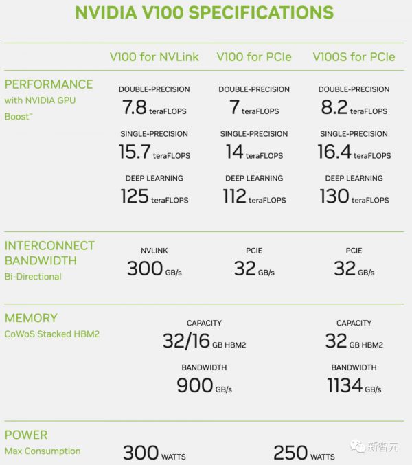 现在剩下的,似乎只有英伟达V100了。根据该芯片参数,芯片相互通信速率是300 GB/s,运行速度最大为125 TFLOPS。