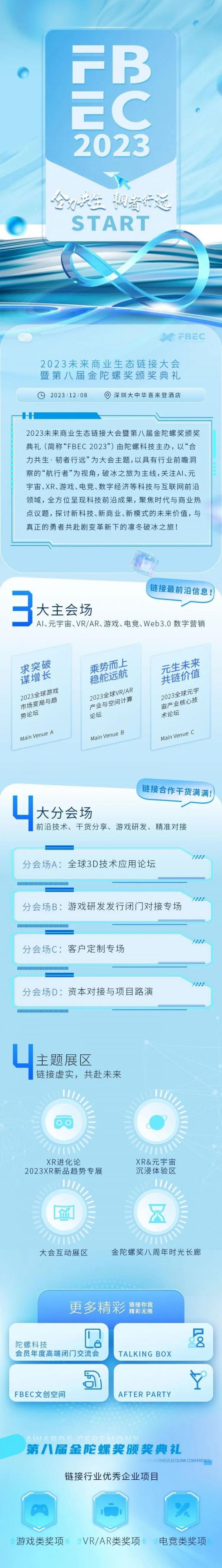2023未来商业生态链接大会暨第八届金陀螺奖颁奖典礼(简称“FBEC2023”)由陀螺科技主办,将于2023年12月8日在深圳大中华喜来登酒店盛大召开。以“合力共生·韧者行远”为大会主题,以具有行业前瞻洞察的“航行者”为视角,破冰之旅为主线,关注AI、元宇宙、XR、游戏、电竞、数字经济等科技与互联网前沿领域,全方位呈现科技前沿成果,聚焦时代与商业热点议题,探讨新科技、新商业、新模式的未来价值,与真正的勇者共赴剧变革新下的凛冬破冰之旅!
