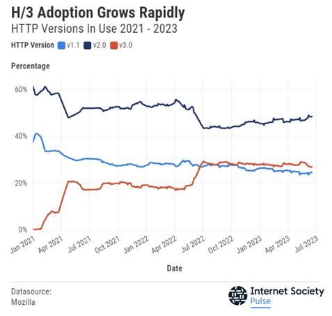 由于这些新协议已经被像谷歌和Meta这样的大公司广泛使用,我们可以肯定地说,当前互联网流量的很大一部分已经在使用HTTP/3。事实上,你正在阅读的这篇博客文章很可能是通过HTTP/3加载的!