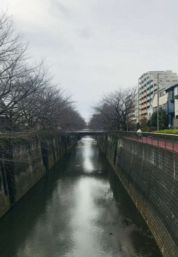 这是日本东京练马区不知名的一隅。当时在附近参观完当地的垃圾处理中心后,便晃晃悠悠地游荡到这。正值寒冬,小河上整齐的樱花树只剩下张牙舞爪的枝桠。仔细观察,河道的两边都是平整且统一的居民区,而河道相对的则是两个几近垂直的岸边,上面无法附着什么东西。若没有中间的桥在两端相连,河道两边颇有一种针锋相对即将开战的阵势。
