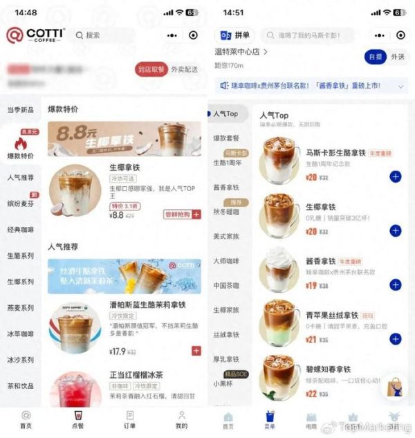 库迪咖啡&瑞幸咖啡 点单小程序价格