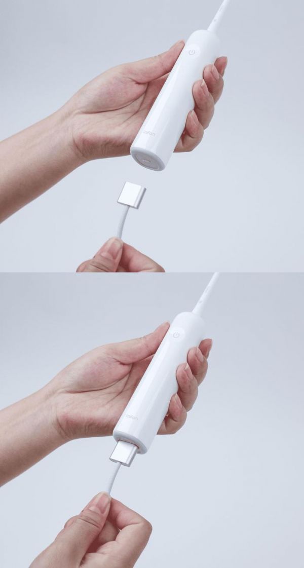 先来说说它的外观,采用无缝一体成型设计,所以整个机身都没有明显的合模线,看起来整体的质感也很精致,简约且大方,按键也是用的无缝按压,还不易进水,防误触功能强,一体成型还有一个好处就是长时间使用不会藏污纳垢,像我之前的电动牙刷用久了以后,按键的缝隙、充电口和机身的一些缝隙就会有很多污垢,看着就比较脏,而且也很难清理。